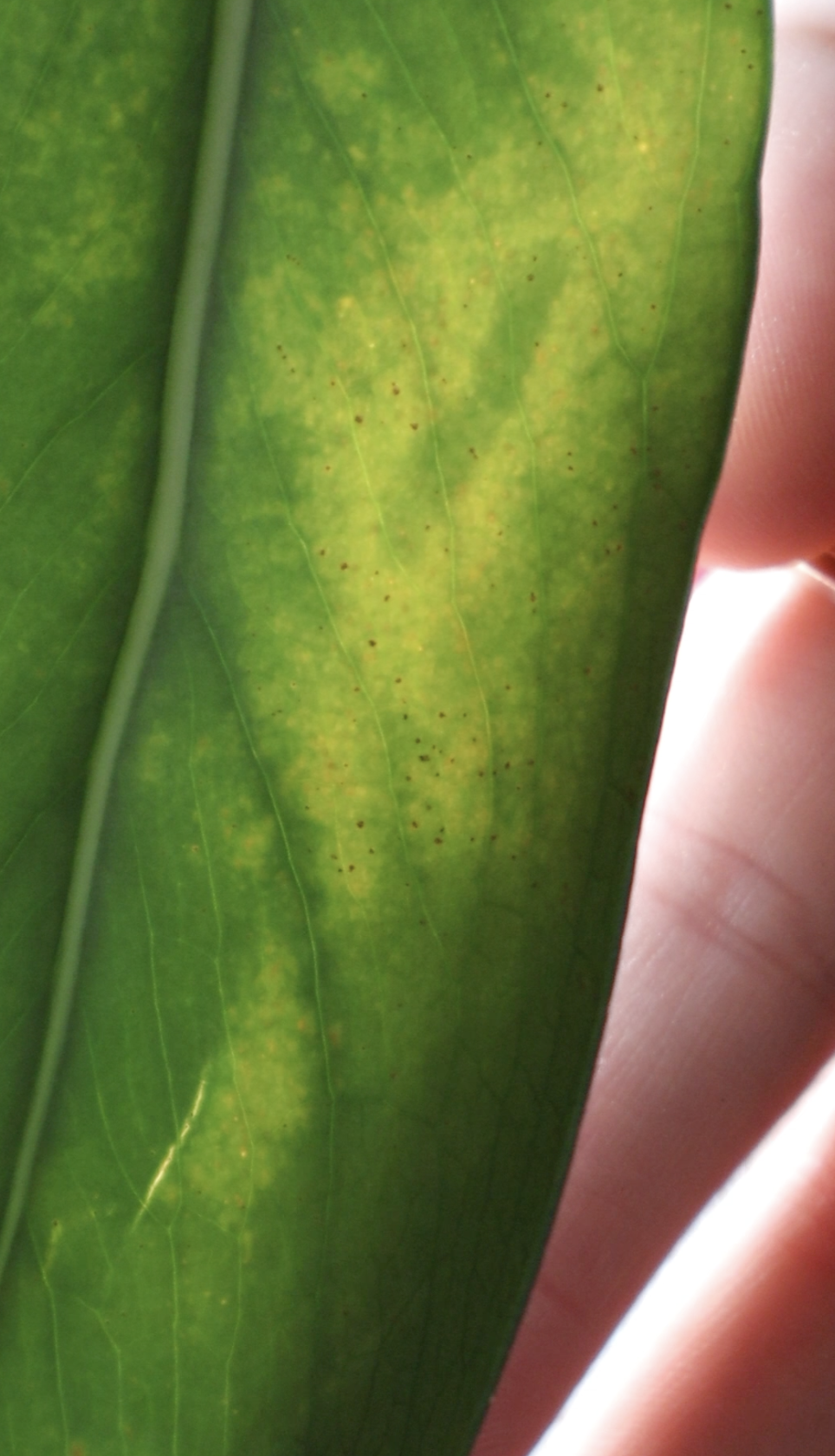 For a more progressive infestation– you begin to see silver, bronze, or pale patches with black speckles– you can begin by hosing off the affected plant, removing any heavily affected leaves, then go in with insecticidal soap or beneficals. Repeat this process until you stop seeing thrips and thrips damage.
